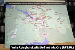 Серед матеріалів виставки – мапа селянського спротиву 1930 року, яку створила начальниця науково-дослідного відділу Музею спротиву Голодомору, докторка історичних наук Наталя Романець.